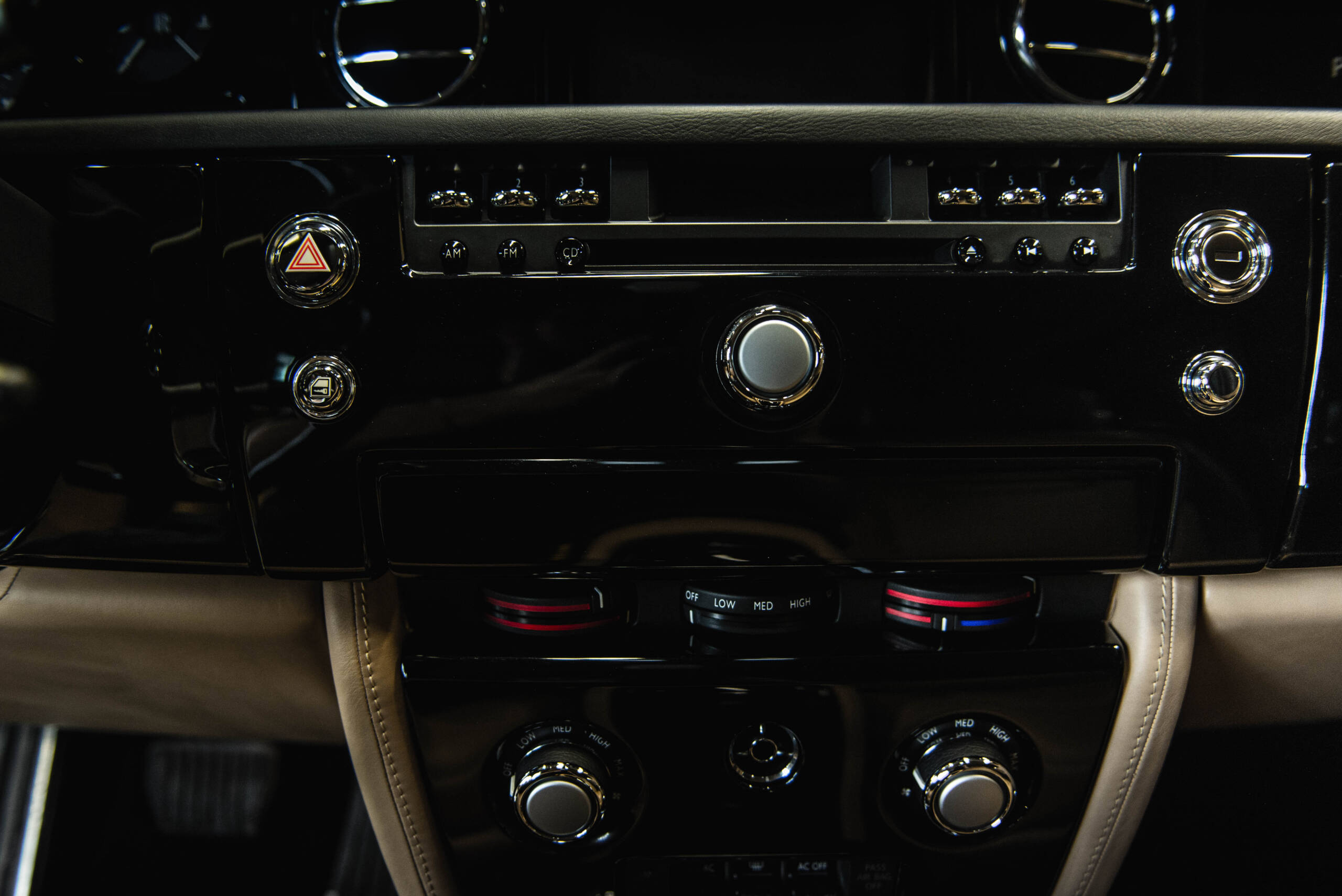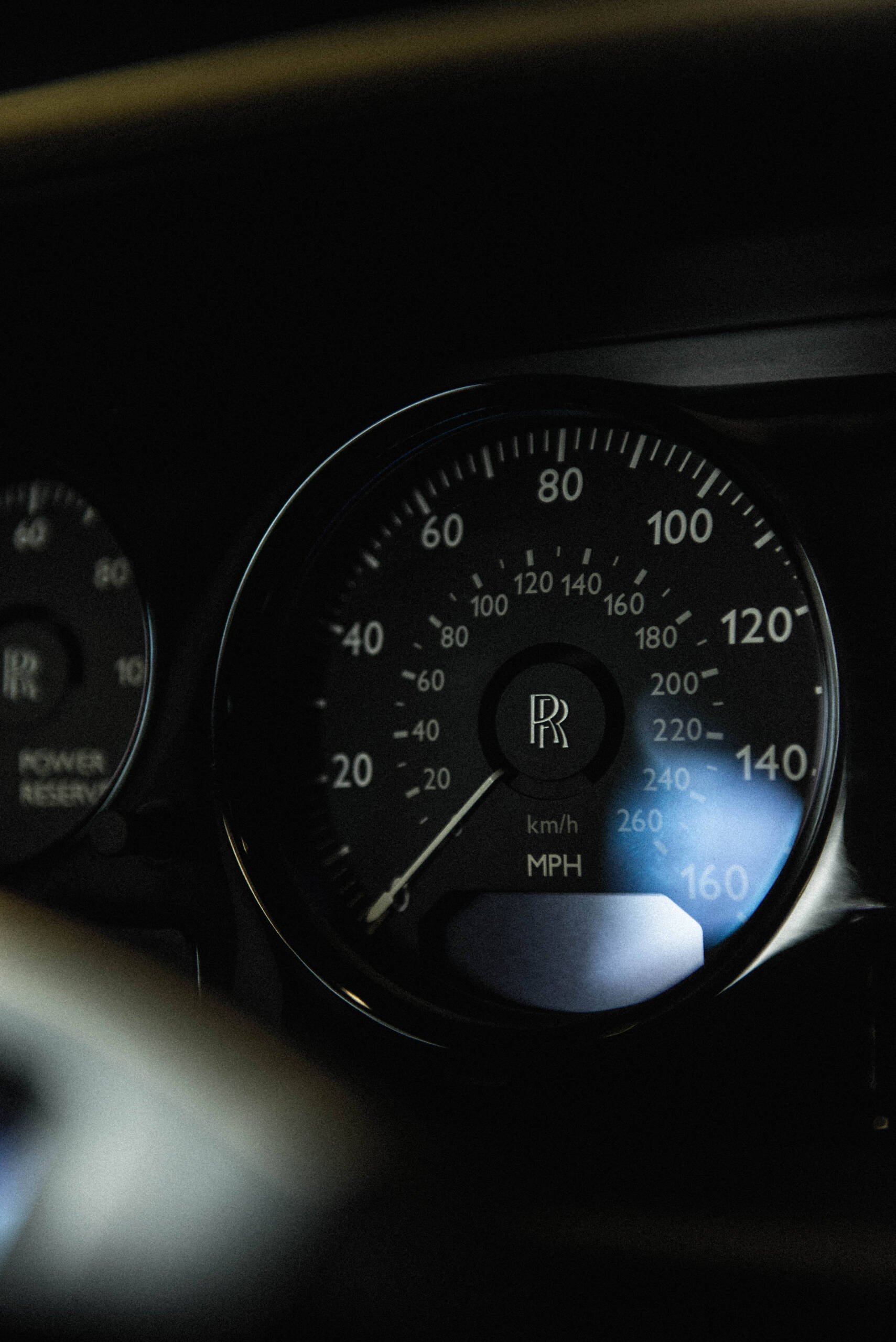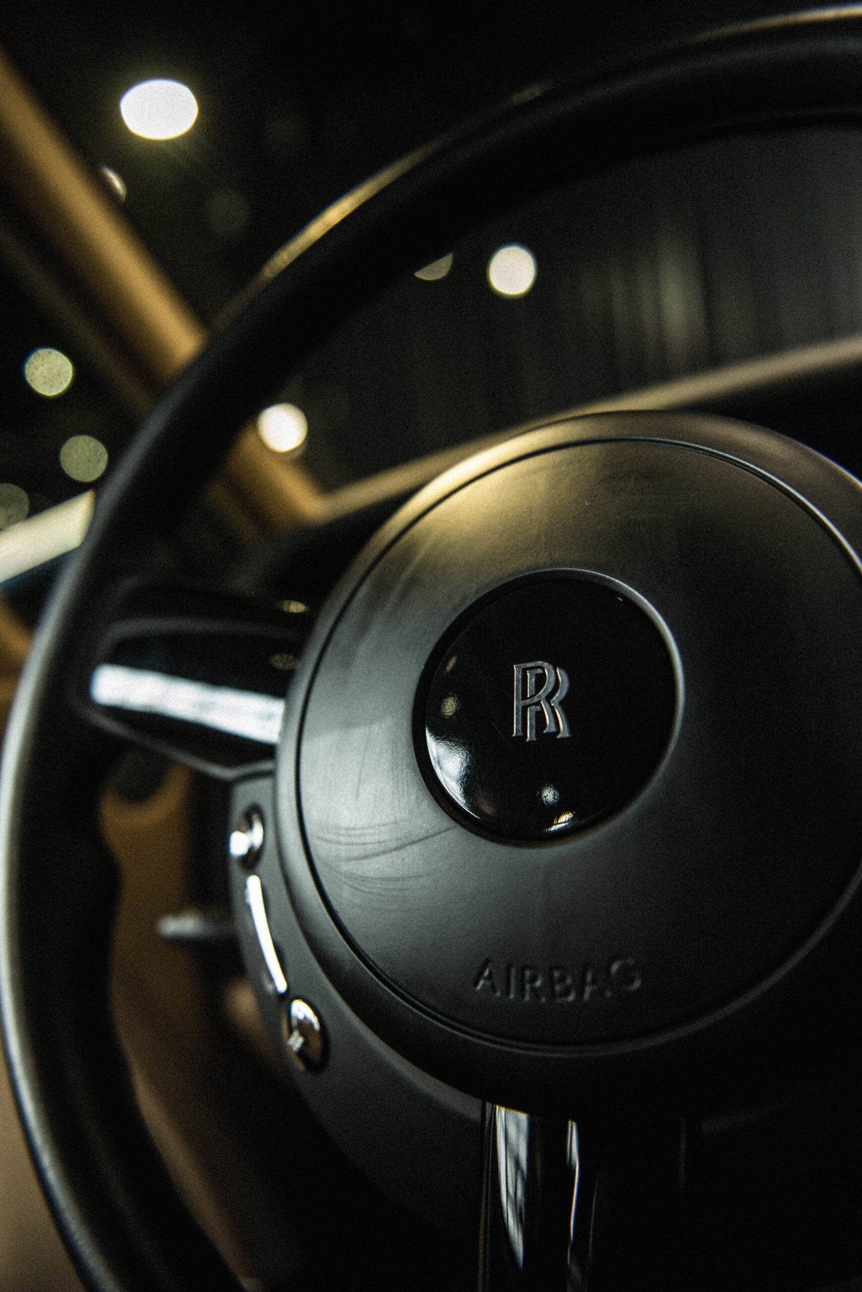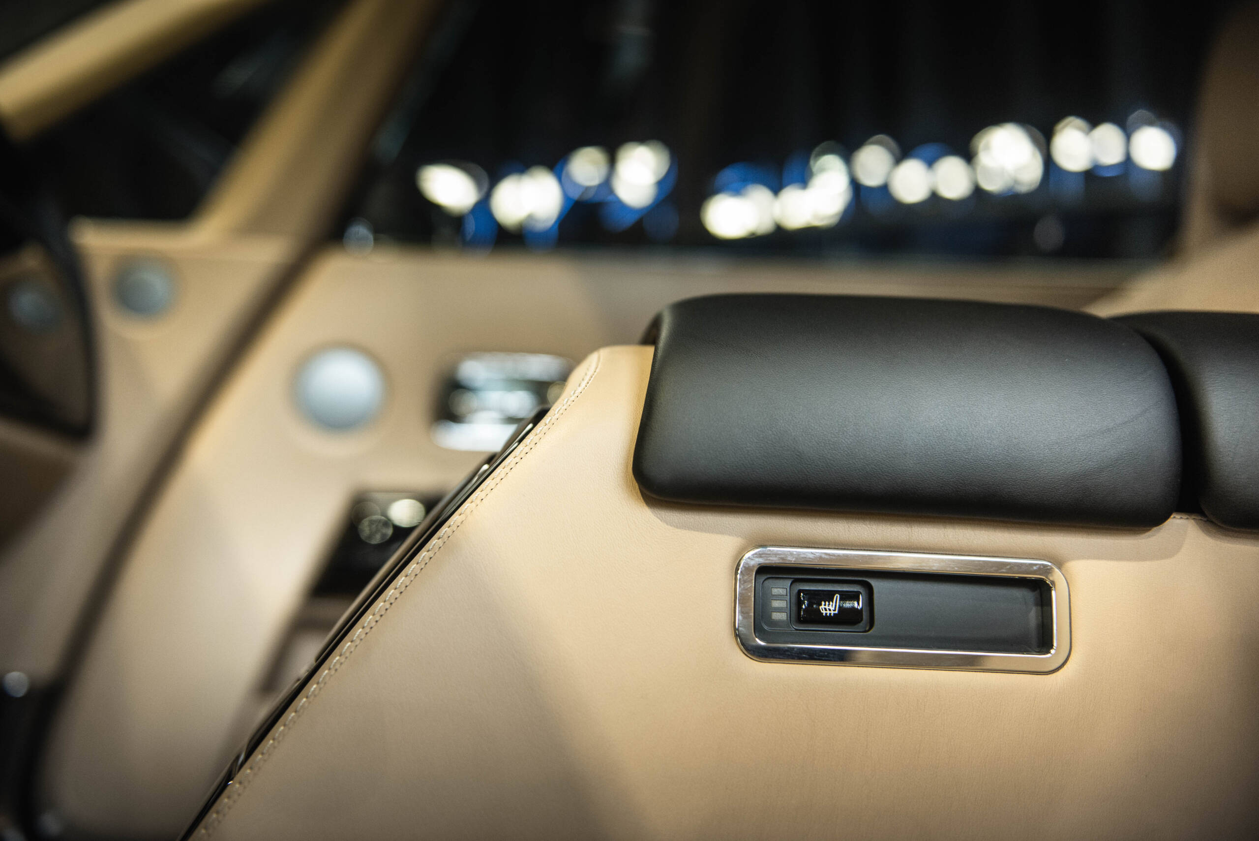 The interior features leather upholstery, wood veneer trim, deep-pile carpeting, and a dashboard-mounted infotainment display. Additional amenities include power-adjustable seating, automatic climate control, and Rolls-Royce’s signature attention to materials and craftsmanship.