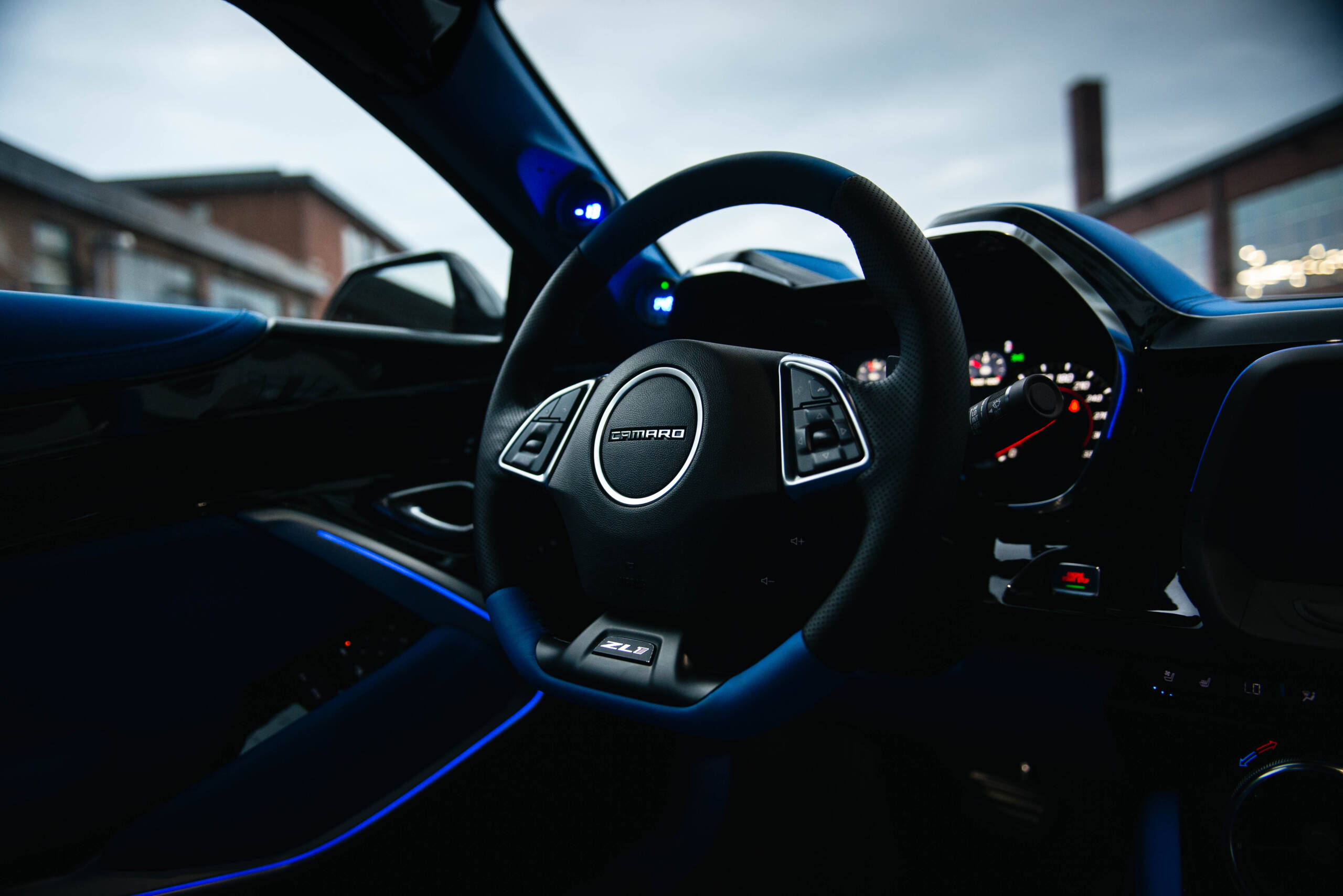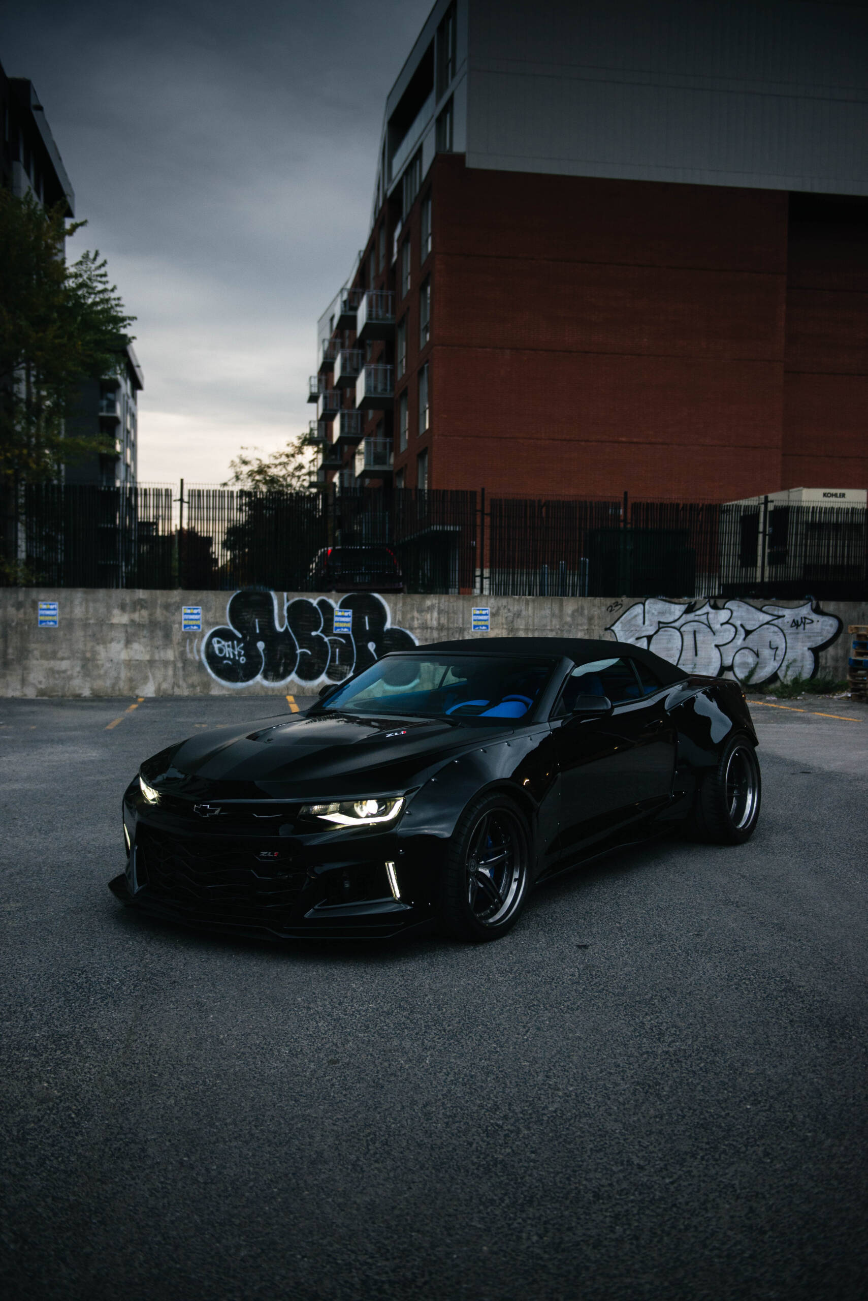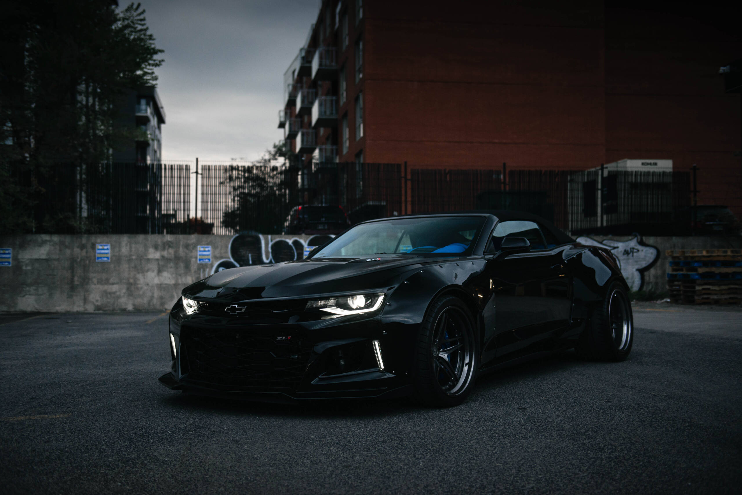 TOYZ autoart is pleased to bring you this exclusive 1 of 1 ZL1 build with hundreds of hours & thousands of dollars invested. This one of a kind ZL1 has nearly too many upgrades to list. The 1,200 horsepower engine setup was a collaboration with Procharger Superchargers & Advanced Modern Performance out of Texas with software programming by HP tuners & Uptown Autosport. New heads and Cam Package was installed to achieve these horsepower figures. A methanol injection kit is also on board. The massive brakes are Carbon Ceramic discs by Brembo which are shared on the Corvette ZR1. The wheels are custom 20 inch HRE Forged Wheels made exclusively for this build wrapped in Michelin Pilot Sport Cup 2 tires with a massive 345/25/20 rear tire. The interior was completely reupholstered in Lamborghini Blue Amon factory leather that can be found in the Urus. The door panels were sanded down including the upper dash and were refinished in exterior gloss black body colour. The widebody has added 8 inches in width to accommodate the 12.5 wide rear wheels. Suspension is KWs variant 3 adjustable coil overs kit. The entire vehicle is wrapped in clear paint protection film to keep the gloss black finish in showroom condition for many years to come.