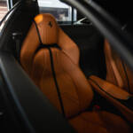 Inside, the cabin is further elevated by a premium upgraded audio system installed by AutoSon, offering improved sound quality over the factory system while maintaining a clean, integrated appearance within the Cuoio interior.