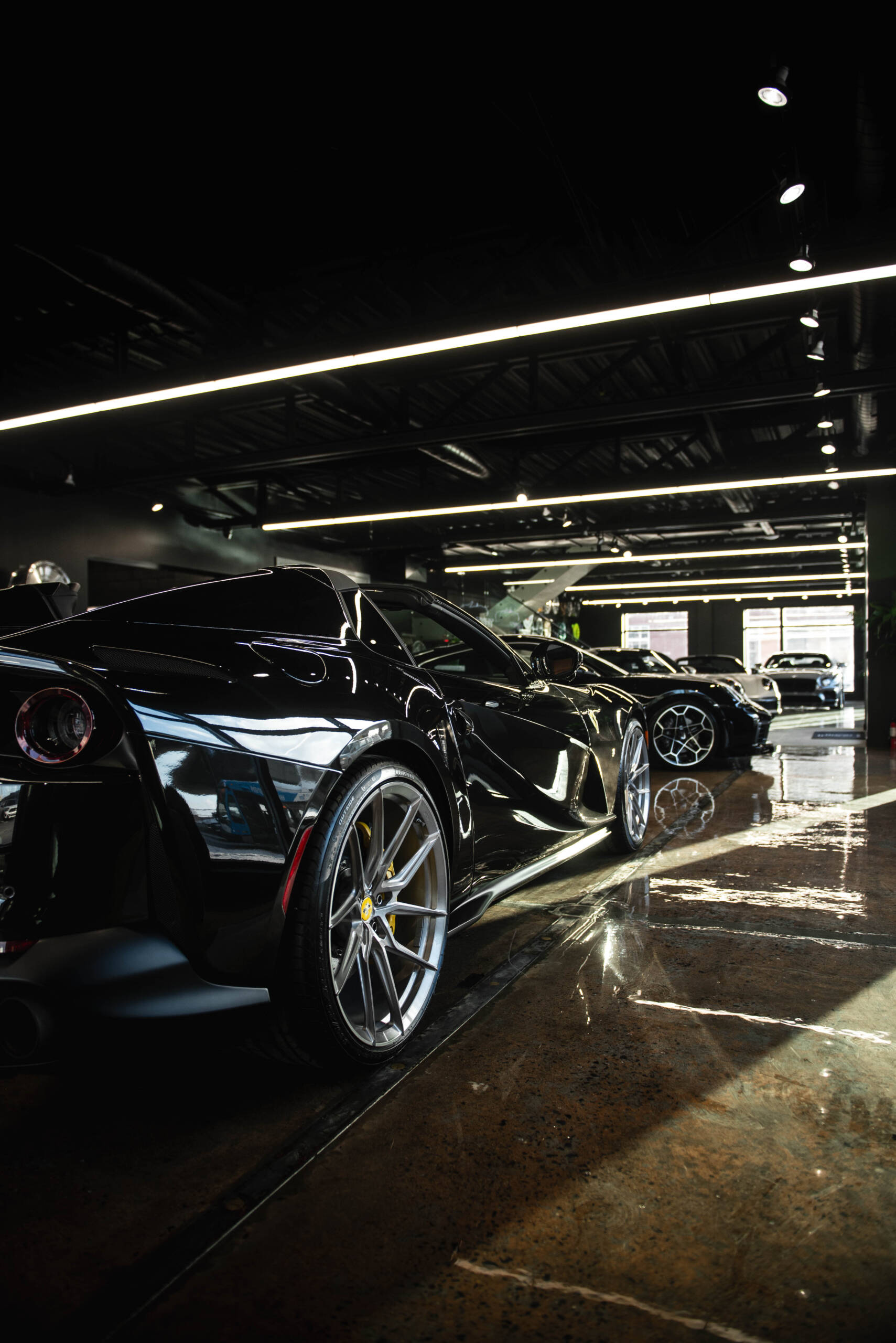 The exterior is protected by a full XPEL gloss paint protection film (PPF), preserving the deep black finish while maintaining a factory-like shine. Subtle carbon fiber accents have been added in the form of a Novitec front spoiler and matching rear spoiler, giving the car a more aggressive, aerodynamic profile without compromising its original design language.
