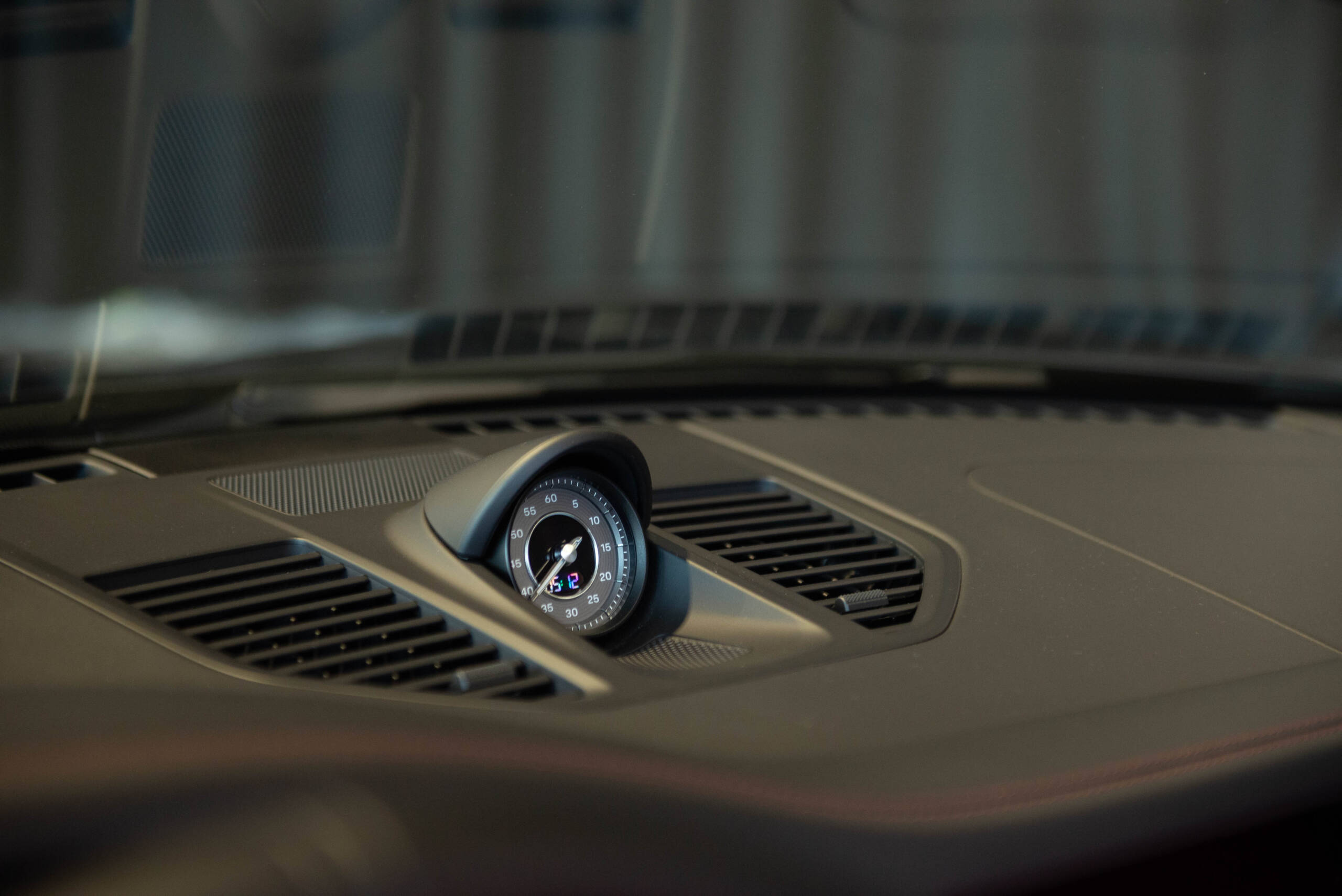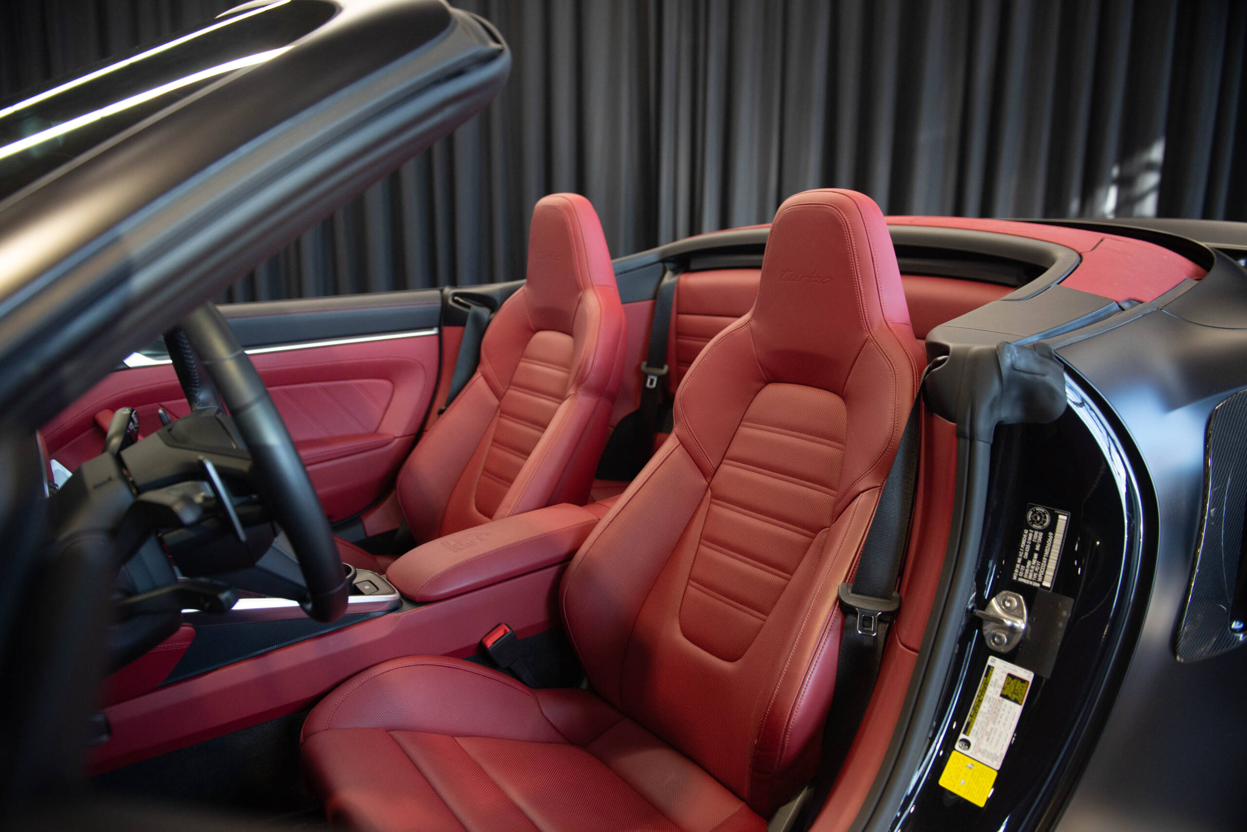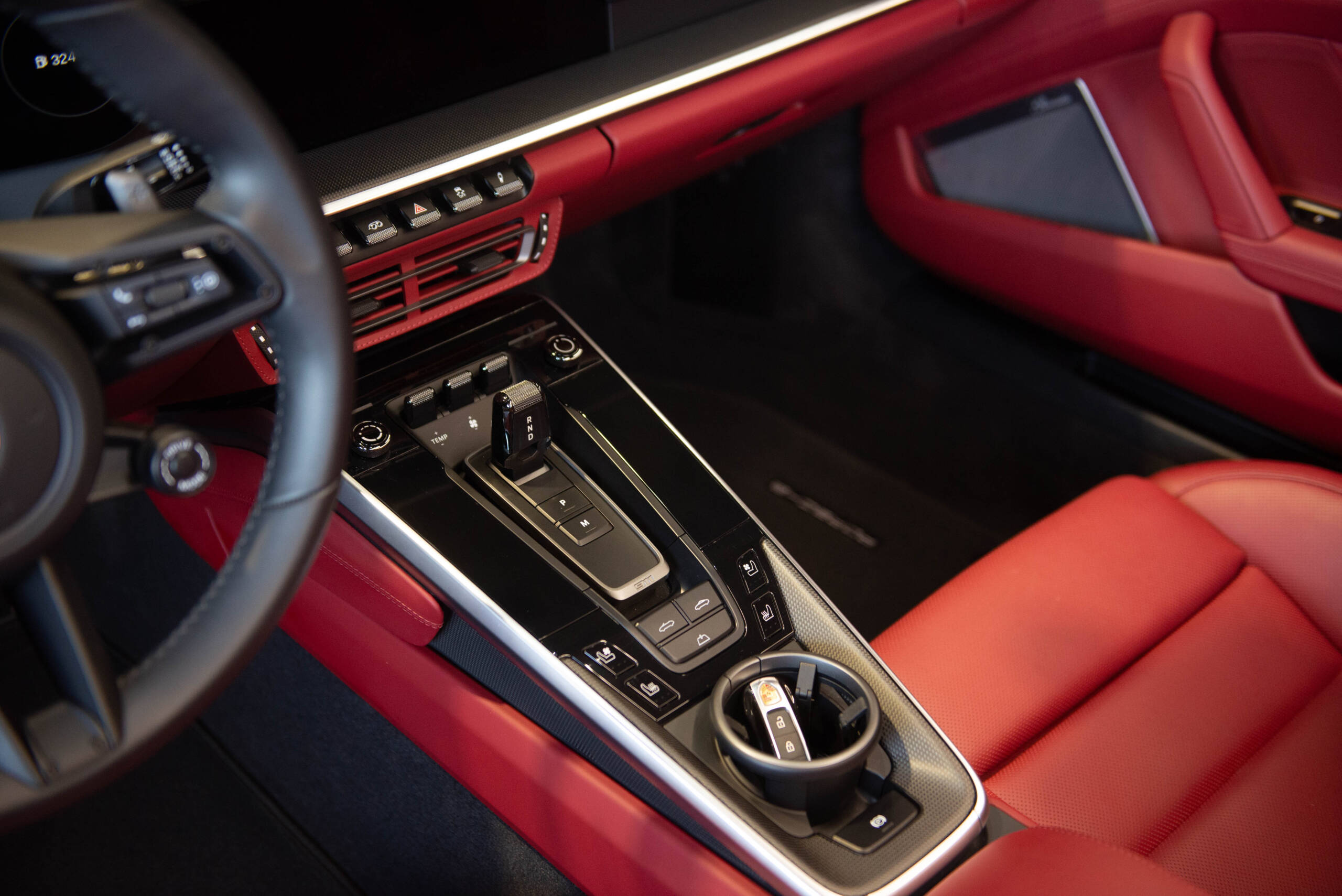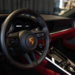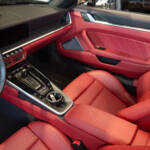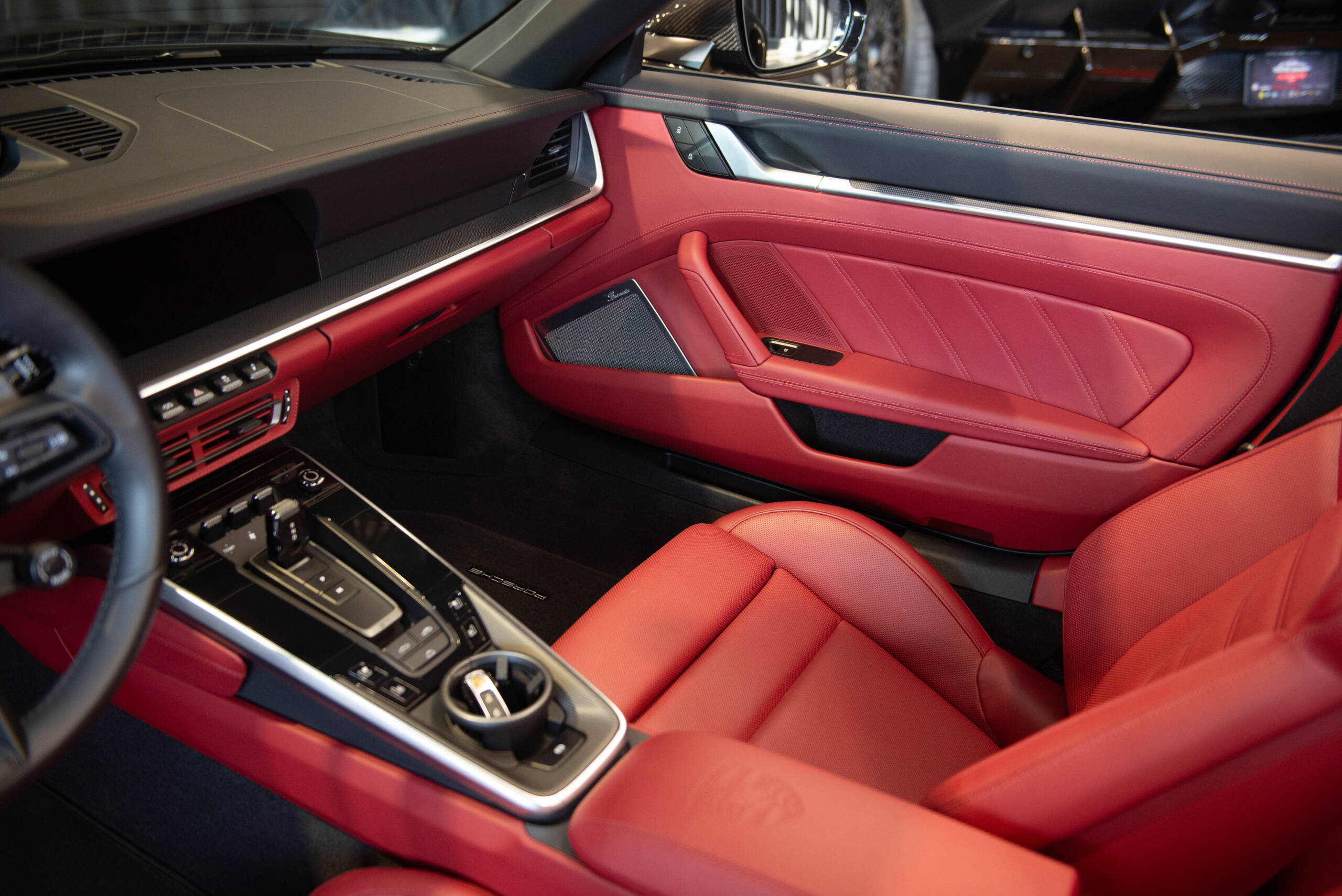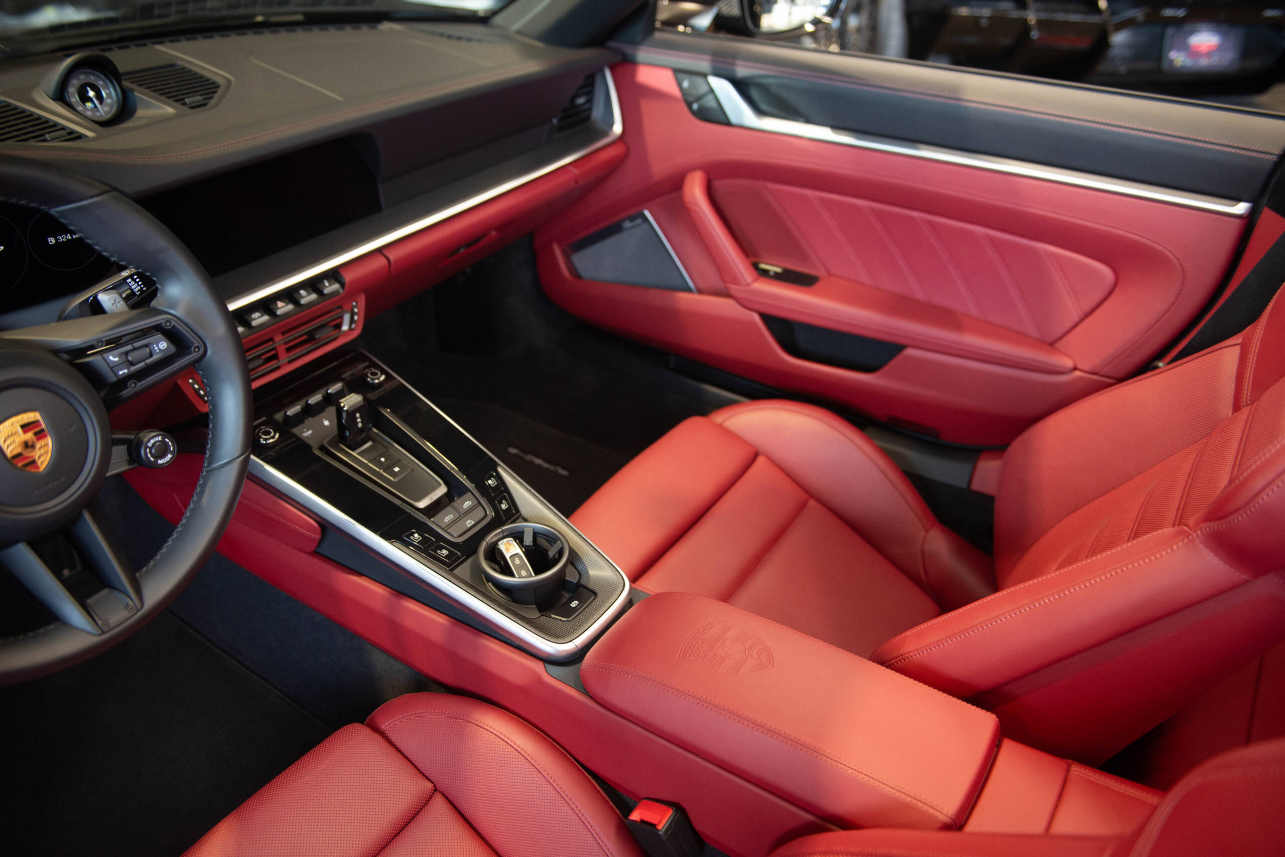 Cherry Red Brake Calipers: Professionally repainted in an eye-catching cherry red, these calipers offer a bold contrast behind the wheels, adding a bespoke touch to the Porsches stance.