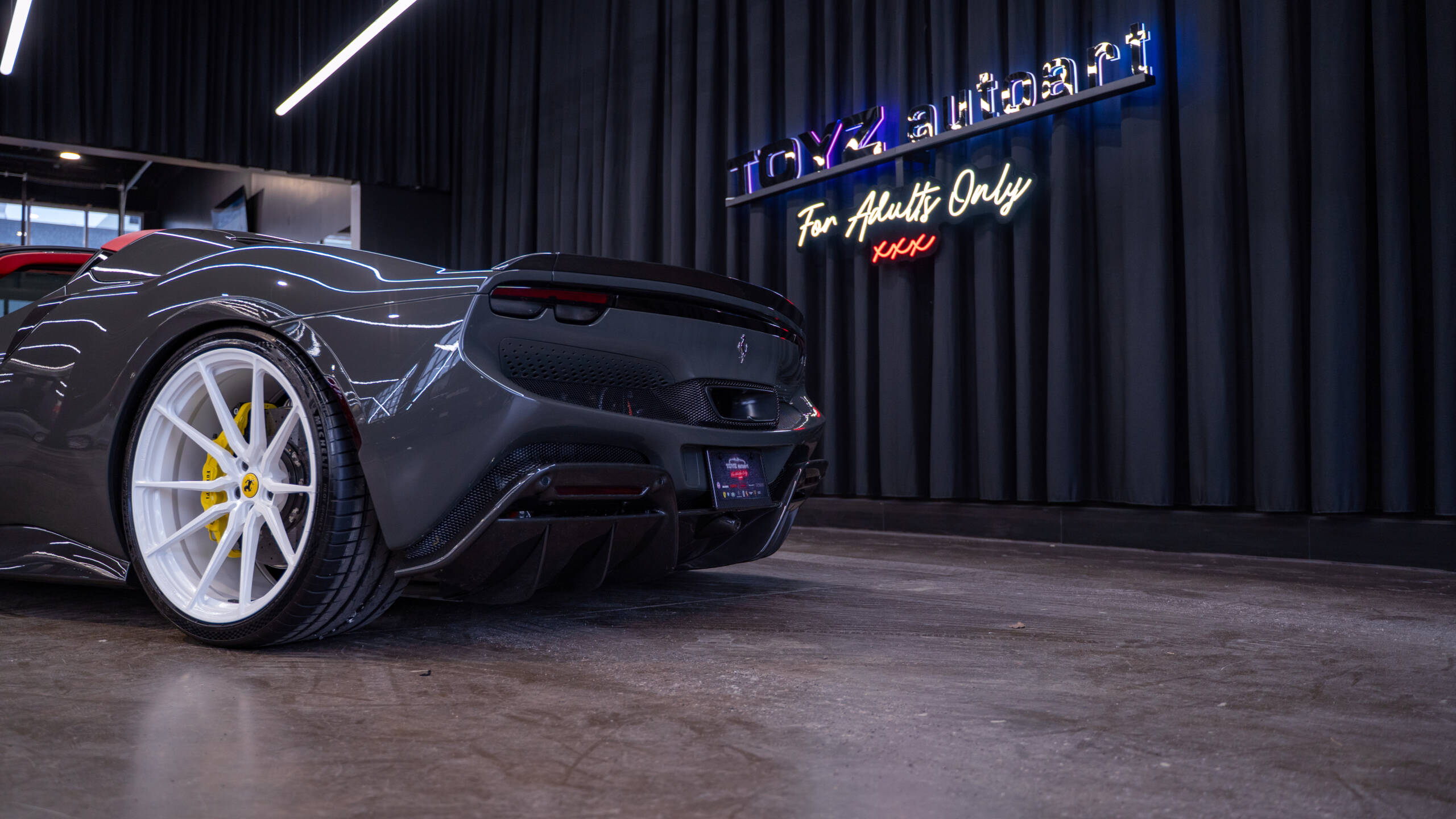 TOYZ autoart is pleased to bring you this 2025 Ferrari 296 GTS and has been extensively enhanced with Novitec carbon fiber components, upgraded interior leatherwork, and suspension modifications. The car is protected with full-body XPEL paint protection film (PPF) and is offered with multiple wheel options.
